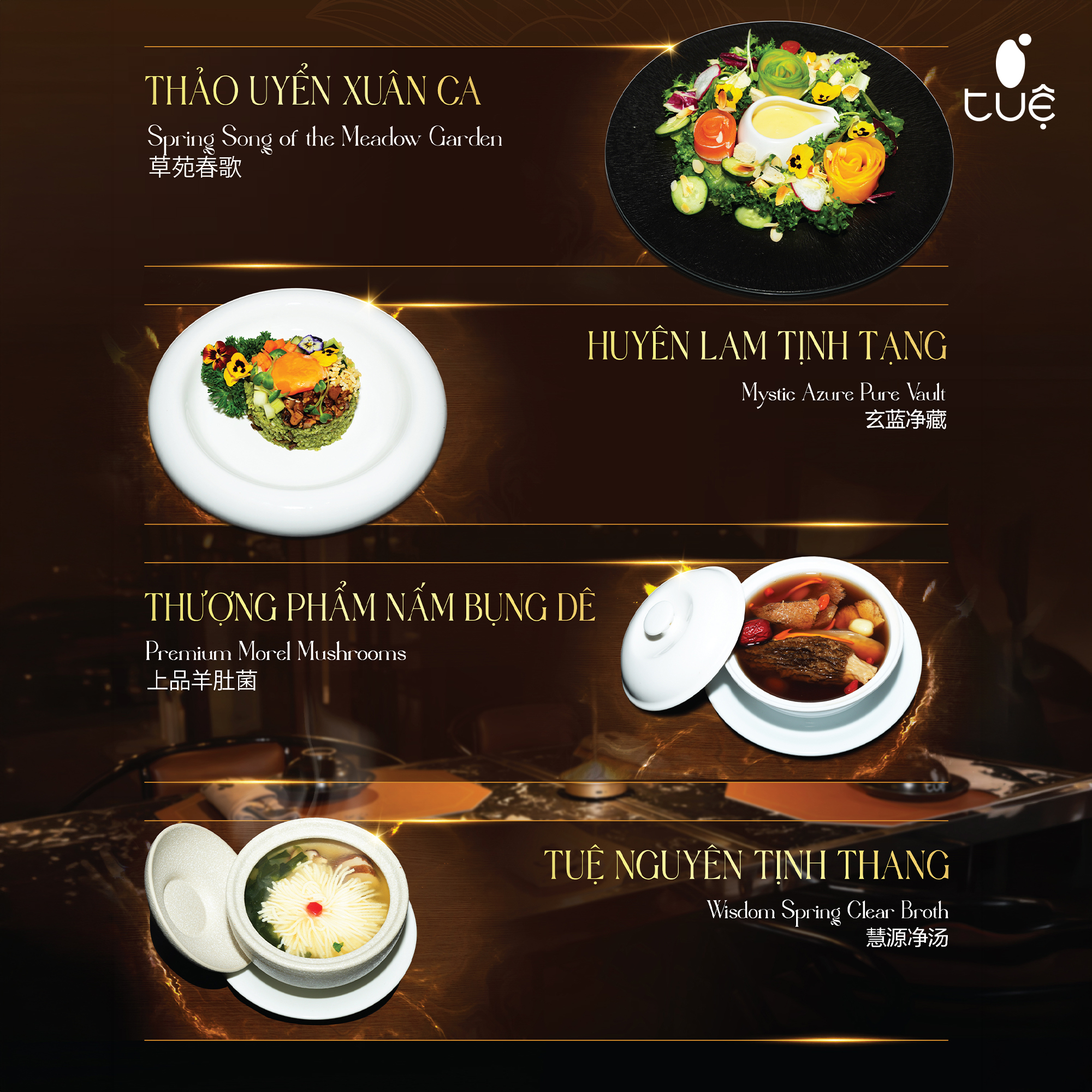Menu Tết tại Chay Tuệ được xây dựng riêng cho dịp đầu năm, chú trọng sự thanh lành, chỉn chu và ý nghĩa, phù hợp cho cả dùng bữa gia đình lẫn tiếp đãi đầu xuân.